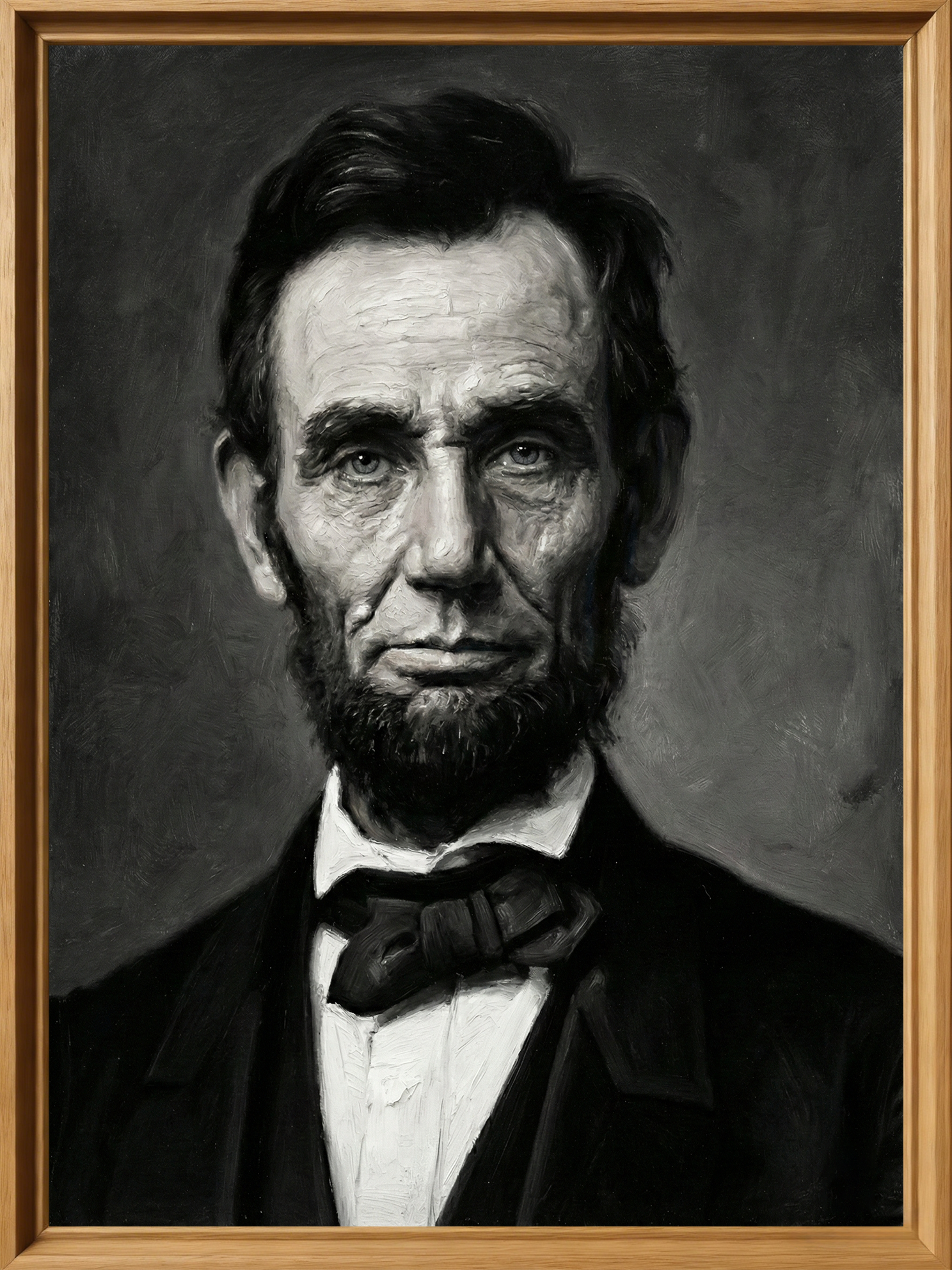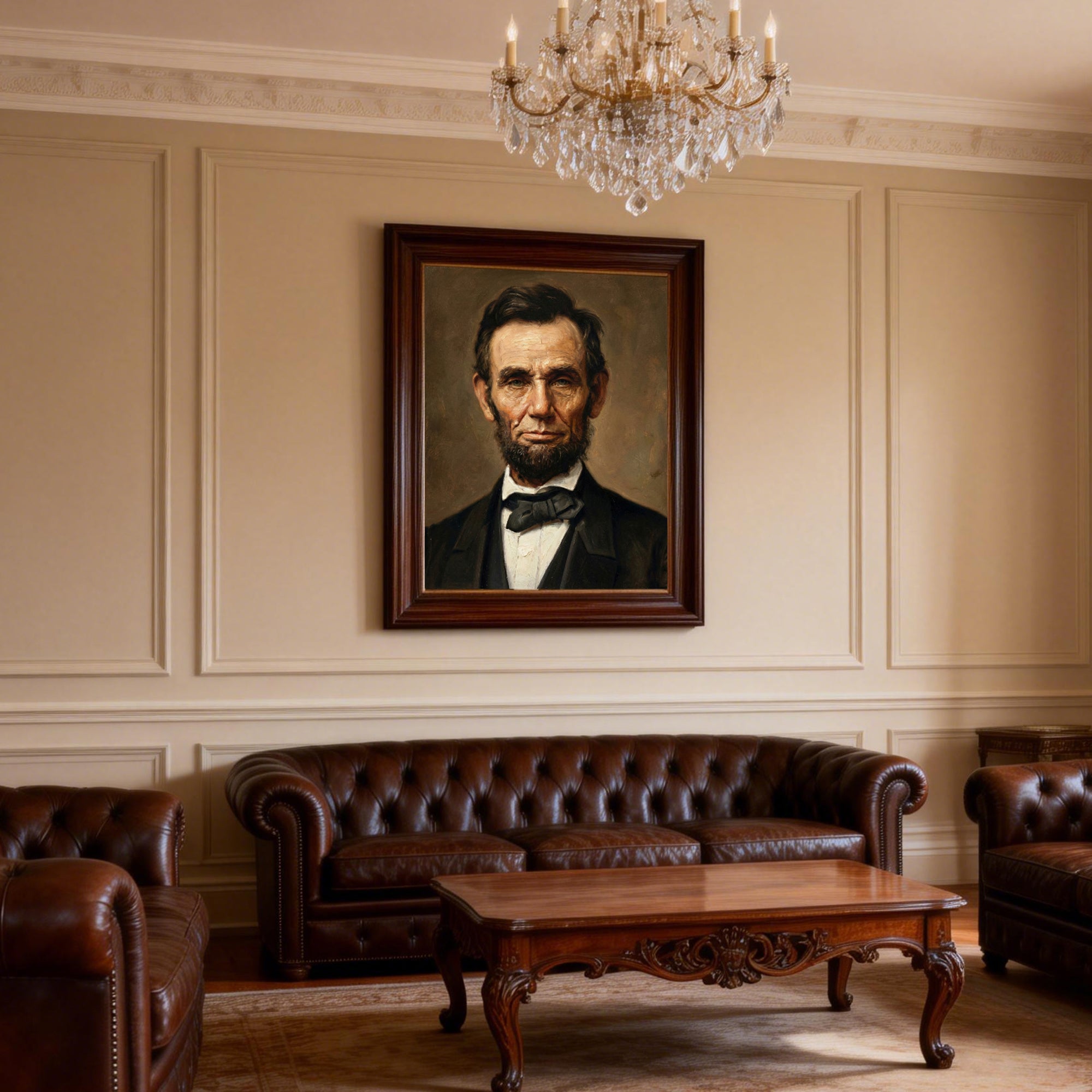 This striking oil painting captures Abraham Lincoln with a steady gaze that reflects resolve, sacrifice, and moral leadership during America’s most defining moment. His expression conveys the weight of a divided nation and the quiet strength required to preserve unity and freedom. Meticulously hand-painted, this artwork honors Lincoln’s enduring legacy and the principles he stood for—integrity, perseverance, and unwavering commitment to justice. Display this piece in your home as a tribute to the strength of character and leadership that helped shape the American spirit.